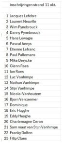 (vorige jaren waren we steeds met een 20-tal deelnemers of dit betekende 20 x 40m = 800 meter lange rij op het strand!)